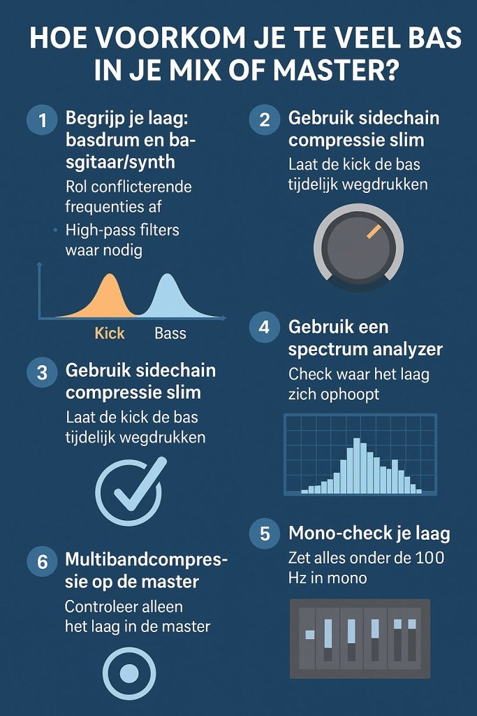 Hieronder leggen we stap voor stap uit hoe je het laag in je mix onder controle krijgt. Dit is relevant voor vrijwel elke stijl, van pop en rock tot EDM en hiphop.