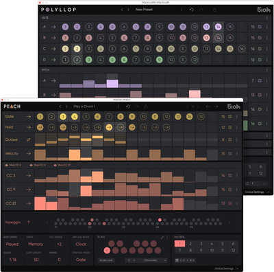 510k Arts PEACH + POLYLLOP, MIDI Plugin Bundle (Download), Bundle consisting of two MIDI plugins, Includes the polyrhythmic sequencer SEQUND and the 4-voice sequencer POLYLLOP
