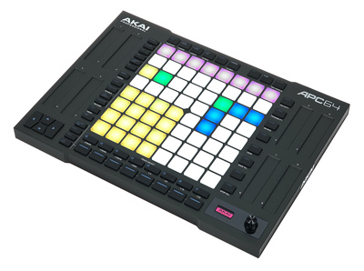 De AKAI Professional APC64 is een krachtige Ableton-controller met 64 RGB-pads, 8 touch strips en een interne 8-track sequencer. Ideaal voor muziek mixen en masteren, biedt hij uitgebreide controle over clips, effecten en instrumenten. Met MIDI- en CV-uitgangen is hij perfect voor zowel digitale als analoge setups