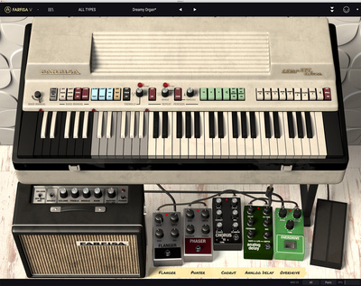 Arturia Farfisa V, Virtual Synthesizer (Download), Component-accurate emulation of the Farfisa Compact DeLuxe organ with physical modelling, Two manuals plus bass section, Independent sound registers for upper and lower manual, including multi-tone booster, percussion and bass voices, Bass range selectable over one or two octaves, Bass Sharp/Soft tone control, Vibrato and tremolo with adjustable depth and speed sync to DAW, ‘Knee Lever’ assignable to modwheel, aftertouch or external MIDI controller, function selectable between booster and wah, Additive synthesis with 48 freely assignable partials or directly drawable waveform via ToneDraw, Customised bass waveform with 4-pole filter, adjustable cutoff and resonance, Attack and release envelope for upper manual, Individual voice tuning for each key, Can be played polyphonically or paraphonically, MIDI split and channel assignment for manuals can be configured separately, Five effects with drag-and-drop sequence: Wah, phaser, delay, chorus, compressor, Guitar amp emulation and convolution reverb with classic spring reverbs, Over 100 factory presets