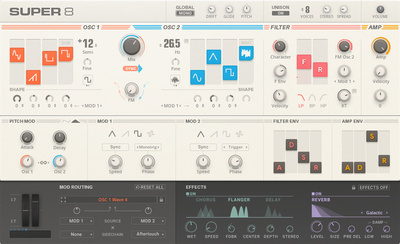 Native Instruments Super 8 is een synthesizer plugin met acht stemmen en twee oscillatoren.