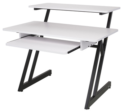 De On-Stage WS7500W Producer Desk is ideaal voor home studios. Met stevig Z-vormig stalen frame, ruime werkoppervlakte (109 x 59,7 cm) en uitschuifbare toetsenbordlade biedt het comfort en stabiliteit. Maximaal belastbaar tot 75 kg, perfect voor mixen en masteren in een compacte, witte uitvoering