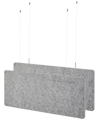 De t.akustik PET Pendant Absorber 50 SGR is dé oplossing voor het verbeteren van de ruimteakoestiek in diverse omgevingen waar wandmontage niet mogelijk is. Deze set van twee hoogwaardige PET-absorptiemodules is speciaal ontworpen om storende galm en echo’s effectief te verminderen. Dankzij het hangende ontwerp met verstelbare roestvrijstalen kabels kunnen de panelen flexibel en eenvoudig aan het plafond worden bevestigd, wat ze ideaal maakt voor kantoren, callcenters, opnamestudio’s en andere professionele ruimtes.