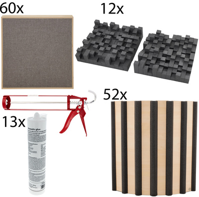 De t.akustik Producer Set L Professional is een complete pakketoplossing voor het optimaliseren van de akoestiek in geluidsstudio’s, thuisbioscopen en homerecording-toepassingen. De set bevat hoogwaardige absorbers, diffusors en lijm voor een verbeterde geluidskwaliteit en ruimteakoestiek.
