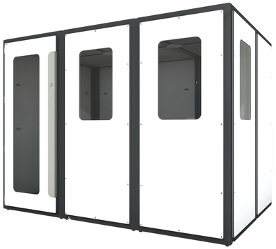 De cabine is voorzien van geluidsabsorberende wanden, bodem en plafond die zorgen voor een indrukwekkende demping van 30 dB, waardoor een optimale geluidsomgeving wordt gecreëerd. Het Vicfix bevestigingssysteem maakt het mogelijk om optionele akoestische modules toe te voegen voor nog betere geluidscontrole.
